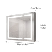 36" X 30" Medicine Cabinet With LED Vanity Mirror, Anti-Fog Recessed Or Surface Mount Bathroom Double Door Large Storage 3000K~6000K Bright Lighted Aluminum Storage Cabinet With Touch Switch - Silver
