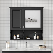 Wall Mounted Mirror Medicine Cabinet, Bathroom Storage With Doors And Open Shelves With Adjustable Shelf - Black
