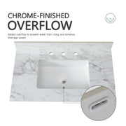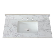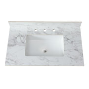 Elegant Sintered Stone Bathroom Vanity Top With Rectangular Ceramic Sink - Carrara White