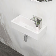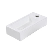 Modern Ceramic Rectangle Wall Mount Bathroom Sink With Single Faucet Hole - White