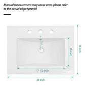 Rectangular Single Vanity Top With 3 Faucet Hole Sink - White