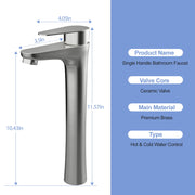 Single Handle Vessel Sink Faucet With Tall Spout For Bathroom Vanity - Brushed Nickel