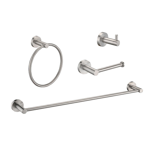 View full detailsComplete Set: Includes 22.7-inch towel bar, toilet paper holder, towel ring, and hook for a coordinated look. Elegant Finish: Features a brushed n...
