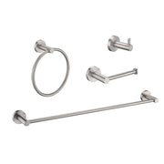 Bathroom Set 4 Pack With Towel Bar Racks, Toilet Paper Holder, Ring, Hook, Stainless Steel - Brushed Nickel