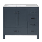 Bathroom Vanity With Ceramic Sink Combo, Abundant Storage Cabinet 2 Soft Close Doors And 5 Drawers