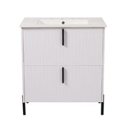 Fluted Bathroom Vanity & Sink, Full Extension Soft Close Drawers - White