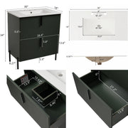 Fluted Bathroom Vanity With Sink, Full Extension Soft Close Drawers - Green