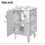 Bathroom Vanity With Ceramic Sink, Freestanding Single Cabinet Set, Soft Close Door, Half Moon Pulls - White