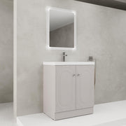 Modern Freestanding Bathroom Vanity With White Resin Sink & Soft Close Doors - Khaki