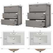 Double Sinks Bathroom Vanity Set With 2 Basins, Soft Close Drawers - Gray