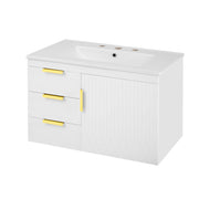 Modern Wall Mounted Bathroom Cabinet With Ceramic Sink, Soft-Closing Drawer And Door
