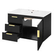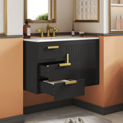 Wall Mounted Bathroom Cabinet With Ceramic Sink, Soft-Closing Drawer And Door - Black