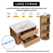 Modern 36" Wall Mounted Bathroom Vanity With Ceramic Sink And Storage Rack, 2 Soft Close Drawers - Imitative Oak