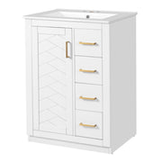 Bathroom Vanity With Integrated Sink, Cabinet With 1 Door And 3 Drawers, For Small To Medium Bathrooms - White
