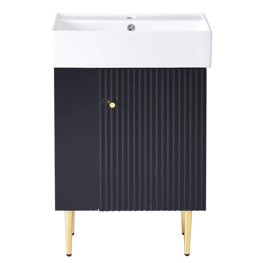 Bathroom Vanity With Ceramic Sink, Modern Single Bathroom Cabinet With 2 Doors And A Shelf, Soft Close Doors