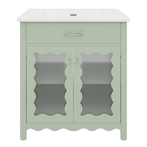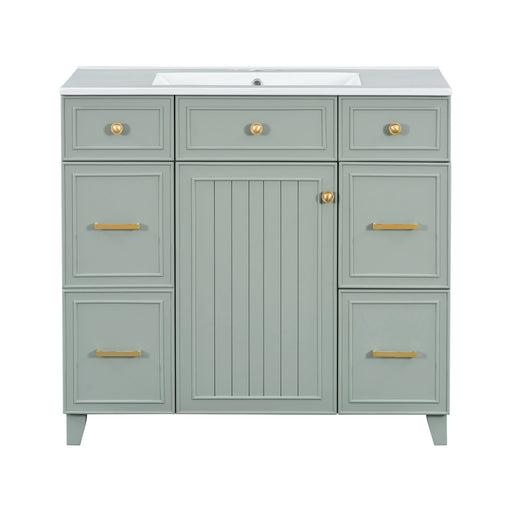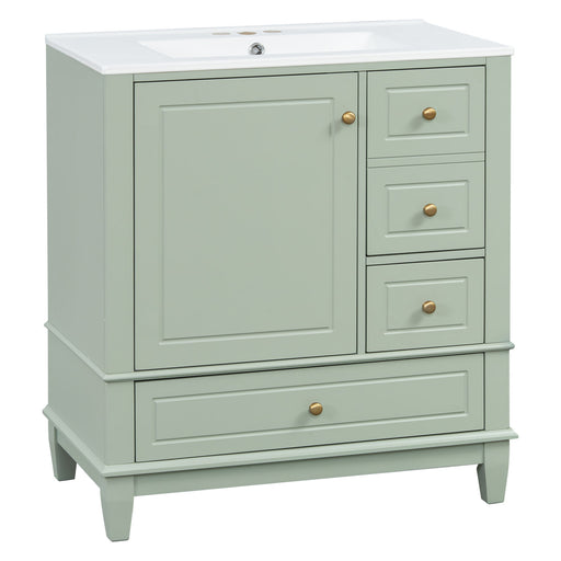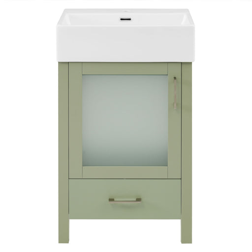 Modern Small Bathroom Vanity Cabinet With Ceramic Basin, Ample Storage, 1 Soft Close Door