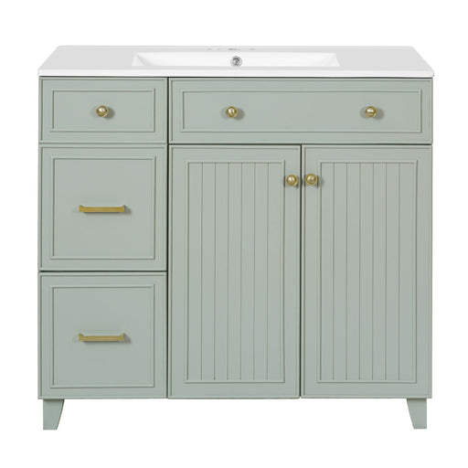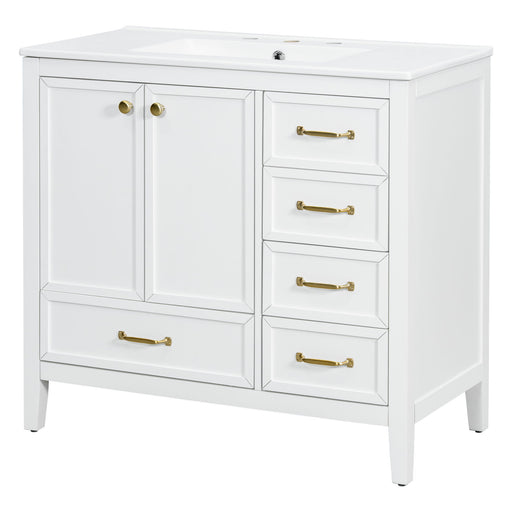 Elegant Vintage Bathroom Vanity With Sink And Soft Closing Door, 4 Drawers Of Different Sizes Frame