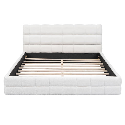 View full detailsElegant Design: This upholstered platform bed features a headboard with button-tufted detailing, adding a touch of visual texture that enhances t...