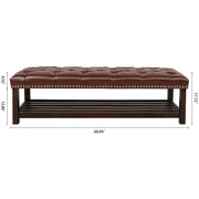 Bedroom End Of Bed Bench Tufted Upholstered End Of Bed Bench End Of Bed Entrance Shoe Bench, 60" With Nailhead Trim And Shelf Bedroom Upholstered Leather Bench Living Room Shoe Rack Footstool - Dark Brown
