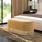 Melinda - Oval Tufted Bullion Fringe Storage Bench - Gold
