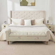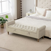 Napped Storage Bench With Rolled Armrest - Griege