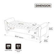 Wide Upholstered Storage Bench With Rolled Armrest For Bedroom - Griege