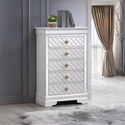 - Embossed "X" Design: Silver Champagne embossed "X" design on wood veneers for a stylish bedroom group highlight.