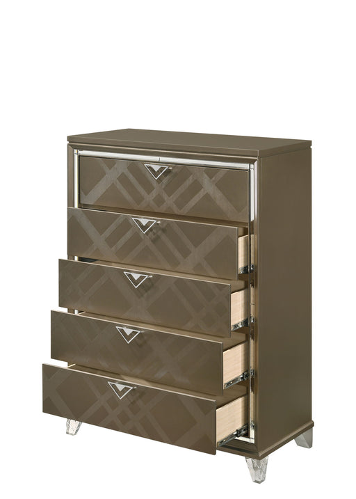 View full detailsElegant Design: This sophisticated 5-drawer chest combines elegance with functionality, featuring embossed fronts that add subtle texture and d...