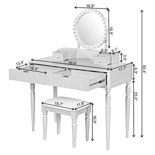3 In 1 Dressing Table With LED Mirror & Storage Stool, Compact Makeup Vanity - White