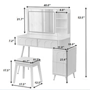 Modern Makeup Vanity Desk With LED Lights & Mirror 4 Drawer Dressing Table Set Space Saving For Bedroom - White