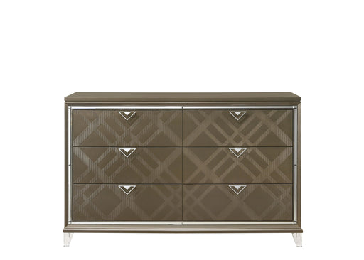 View full detailsElegant Design: This dresser features a mirrored top with raised geometric trim and sunburst motifs, combining elegance with modern design to...
