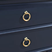 - Brushed Gold Ring Pulls: Adds a refined accent to the dark blue finish