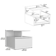 Floating Nightstand Wall Mounted With Single Drawer And 2 Tier Shelf - White