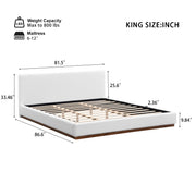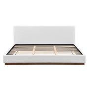 Elegant Boucle Upholstered Bed With Wood Grain Textured Solid Wood Base Frame