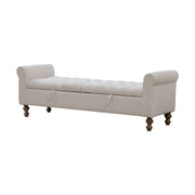 Modern Upholstered Storage Bench With Rolled Armrests]