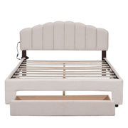 Queen Size Upholstered Platform Bed With Drawer - Beige