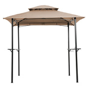 Outdoor Grill Gazebo 8 X 5 Ft With Double Tier Soft Top Canopy, Steel Frame, Bar Counters & Hook Metal - Khaki