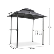 Outdoor Grill Gazebo With Double Tier Soft Top Canopy, Steel Frame, Bar Counters & Hook