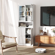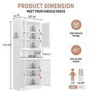 Metal Kitchen Pantry Cabinet Tall Storage With Adjustable Shelves, Heavy Duty Stainless Steel Frame - White