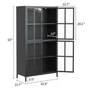 Premium Metal Storage Cabinet With Tempered Glass Doors, Adjustable Shelves, And Anti Tipping Device - Black