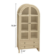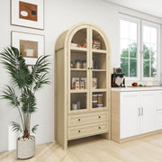 Tall Arched Kitchen Pantry, Modern Farmhouse Wood Kitchen Storage Cabinets, Arched Storage Display Cabinet With Adjustable Shelves, Versatile Cupboard For Kitchen, Dining Room, Living Room - Natural