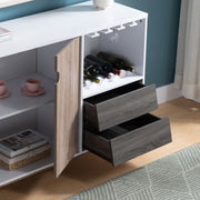 Wooden Display Rack, Cabinet With Drawer, Holds 6 Wine Glass - White / Dark Taupe