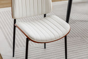 Dining Chairs (Set of 2) Mid-Century Modern Retro Faux Leather Chair With Bentwood Upholstered Seat Metal Legs Adjustable Foot For Kitchen Dining Room Chairs - White