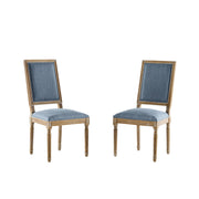French Country Dining Chairs (Set of 2) Elegant Cane Backrest & Upholstered Seats With Fluted Legs And Weathered - Slate Blue