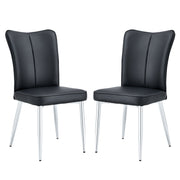 Modern Minimalist Dining Chairs (Set of 2) Curved Backrest & Cushion Metal Legs - Black