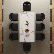 Rectangular Dining Table For 6 - 8 People With Hourglass Base And 8 Chairs - Black White