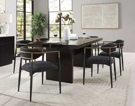 View full detailsSet Composition: This elegant dining room set consists of 7 pieces, including one dining table and six side dining chairs. It's perfect for c...