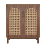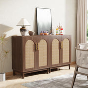 Sideboard Buffet Cabinet With Handwoven Rattan Doors (Set of 2) - Dark Brown