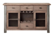 - Ample Storage Space: The server includes 4 drawers, 2 doors with interior compartments, and a wooden shelf. There is also a dedicated rack for wine bottles and glasses, providing organized and versatile storage options.