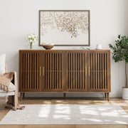 Grille Striped Sideboard Buffet Cabinet With Storage, Multifunctional Accent For Dining Room, Living Room - Walnut